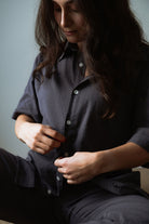 Slip into effortless comfort with our Samira Shirt, thoughtfully designed in an oversized silhouette. Crafted from breezy seersucker made of 100% organic cotton, this shirt is your go-to for laid-back days. Finished with a classic collar, short sleeves, and delicate mother-of-pearl buttons for that subtle touch of elegance.