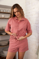 Our Samira shorts are the perfect organic cotton shorts for lounging, sleeping, or easy everyday wear. Made from 100% breathable organic cotton, they feature a relaxed fit, elasticated waistband, and subtle side pockets. Ideal as women’s pyjama shorts or sustainable loungewear.
